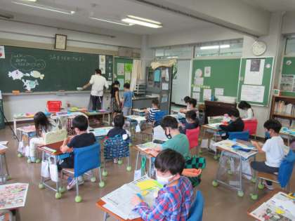 今日の1年2組と3組の図工では、「海を作ろう」の学習に取り組みました。