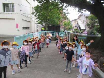今日の活動の最後に1年生の活躍を褒め、みんな頑張ったことと頑張った自分への拍手をし、最後に互いに感謝の気持ちを込めて「サンキュー!」のエアタッチを行いました。笑顔もいっぱいの1年生のみなさんです。