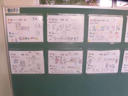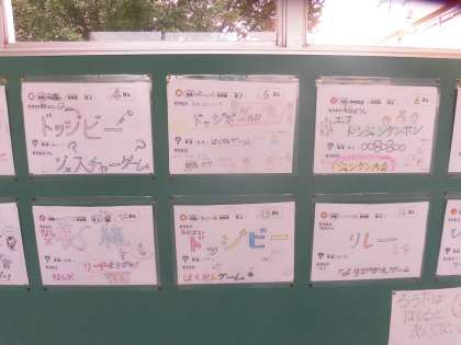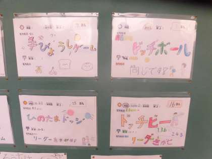みんなにどんな遊びかを伝えるためにポスターも書きました。2階の渡り廊下に展示してあります。
