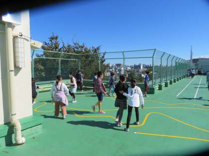 4年生は今日の中休みの遊び場は、北校舎屋上でした。昨日の雨のおかげか澄んだ空気で富士山がはっきり見える中、追いかけっこや日向ぼっこ、なわとびなどみんな思い思いの遊びをして、楽しく過ごしていました。