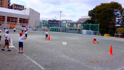 今回は、3年2組の「投げ投げベースボール」の様子をお伝えします。9月に行った遠投能力の向上を目指した学習を生かし、打つ運動を投げる運動に変えて行っています。子どもたちは、「もっと遠くまで投げるにはどうしたらいいかな。」「より点を取るにはどこに投げたらいいかな。」と、試行錯誤しながら学習に取り組んでいます。これから、作戦の工夫やルールの工夫など、子どもたち自身が学習をよりよいものに昇華していきます。子どもたちの成長が楽しみです。