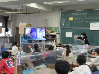 でき上がった作品を全体で鑑賞し、今日の造形活動を友達とともに充実させていました。