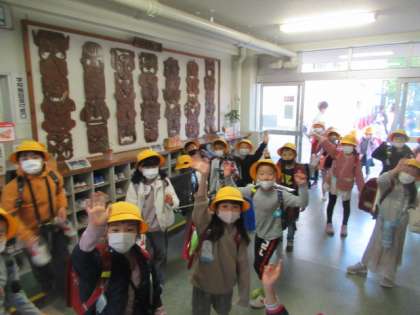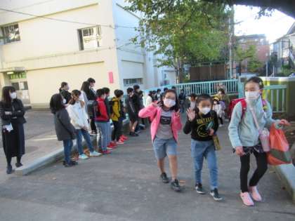 気持ちのよい秋晴れとなる中、子どもたちは元気にあいさつをして登校しています。