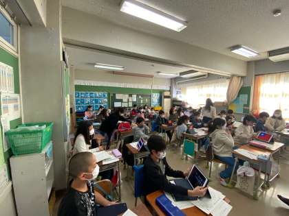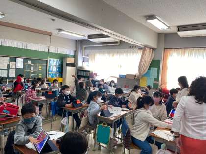 本日、世田谷区の英語教育推進アドバイザーの先生に来ていただき、授業をしていただきました。5年生の「I want to go to Italy」の単元で、自分たちが行ってみたい国、そこで見てみたいものや食べたいものについて積極的に発表することができました。2校時に5年2組、3校時に5年1組、4校時に指導・助言をいただく機会をもち、教職員の研修を行いました。研修テーマは「児童が主体的にコミュニケーションを図ろうとする授業づくり」です。子どたちが主体的に話したり聞いたりできる授業づくりを目指していきたいと思います。