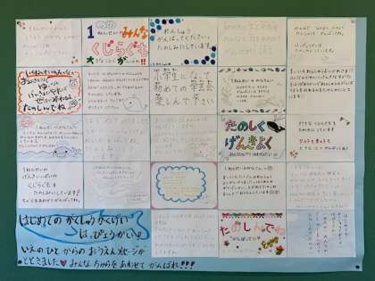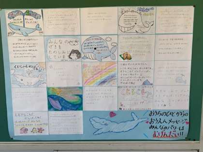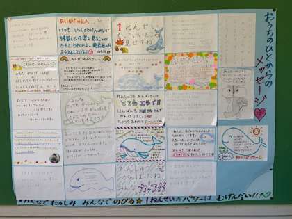 ろうかにお家の方からのメッセージを貼らせていただきました。ご多用の中、用意してくださり本当にありがとうございます。子どもたちは、ろうかを通るたびに嬉しそうに読んでいます。
