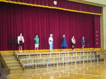 *写真は、今日の「はじめのことば(4年)」と「おわりのことば(6年)」の一コマです。