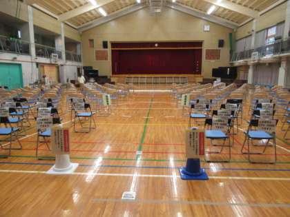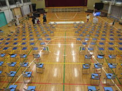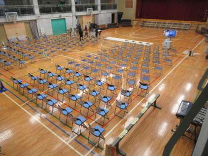 既にご案内を配布していますが、明日の保護者鑑賞日の会場準備が終わりましたので、参考資料として写真を掲載します。