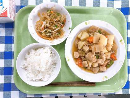 今週は土曜日まで給食がある珍しい一週間でしたね。学習学芸発表会など一生懸命頑張っているので疲れがたまっている人もいると思います。今日は食べるとほっとするような、ほくほくじゃがいもの煮物をつくりました。和食は脂質が少ない料理が多く、消化をしやすいです。