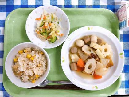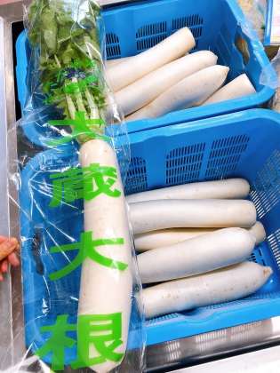 今日は世田谷区でとれた食材をつかった、せたがやそだち給食です。洋風おでんに入っている大根が、世田谷区で収穫された「大蔵大根」です。ふつうの大根は葉の近くが緑色なのに比べて、大蔵大根は根元まで白く、太いのが特徴です。11月から12月にかけて世田谷区のいろいろな直売所で売られています。ぜひ探してみてください