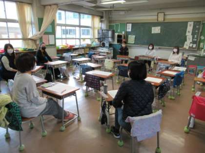 午後3時30分から1年3組の教室で、今年度第8回の小1サポーター連絡会を開きました。