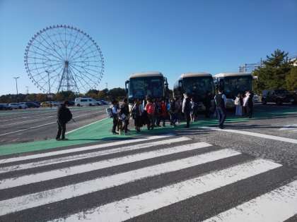 葛西臨海公園を出発し、車窓から東京湾臨海部を見学しながら、学校に戻ります。来週には、社会科見学の振り返りをし、学習のまとめをします。