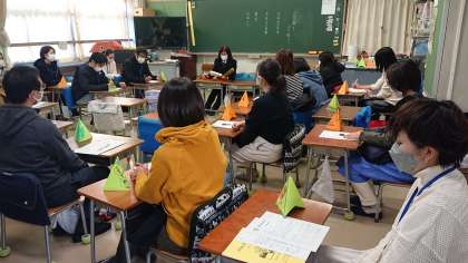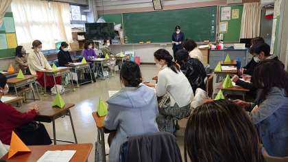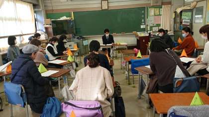 全体会だけでなく、教室で子どもの使っている椅子に座って担任から話を聞いたり、懇談をしたりという時間をもちました。