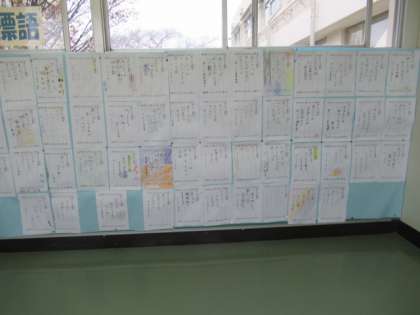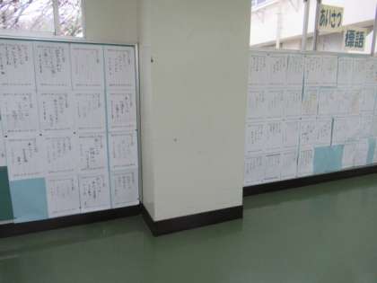 12月の「あいさつ週間」を担当する5年生のみなさんが「あいさつ標語」をつくり、2階渡り廊下掲示コーナーで掲示発表されています。