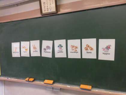 今日は約1か月ぶりに外国語活動の学習がありました。テーマは「Zoo Animals」で、動物の名前を発音に気を付けて読んでいました。