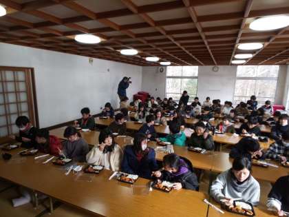 早速「いただきます!」のあいさつをして、お弁当をいただき始めています。