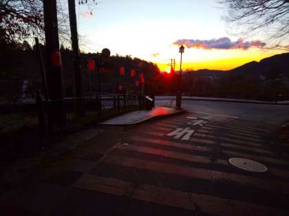 朝のつどいをを宿舎前で行い、大谷川まで散歩をしました。