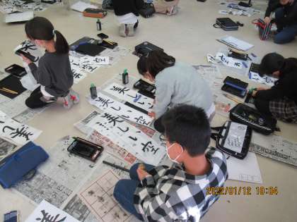 4年生 三学期スタート〜書き初め「美しい空」〜