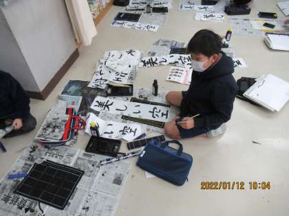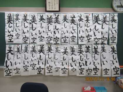2学期の終わりと冬休みに練習した文字をどうすれば上手く書けるのかを考え、一番上手な「美しい空」を目指す姿がとても素敵でした。書き初めを通して、大きく成長することができました。
