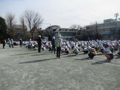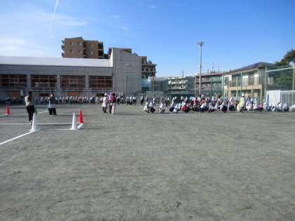 今日の想定は、給食終了後の掃除の時間に入ってすぐの時間に職員室から出火し、安全確保のため第1避難場所の校庭に避難することでした。さらに、放送機器の使用が不可のため、避難指示などを教職員が分担して教室や教職員に伝えることも訓練しました。