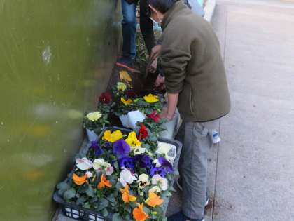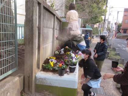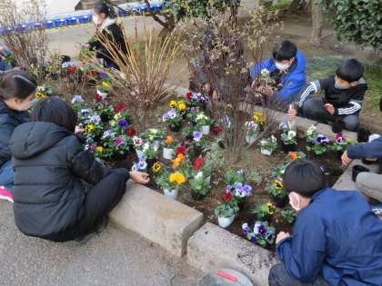 1/17 エコ・グリーン委員会がパンジーを花壇に植えました。