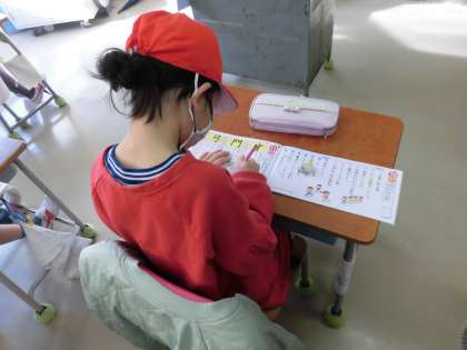 お手本を何度もなぞって書き、漢字ドリルや手の側面が真っ黒になっている子もいました。