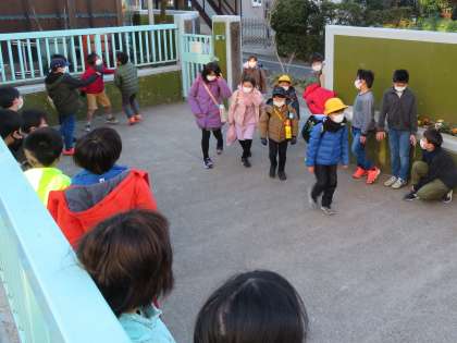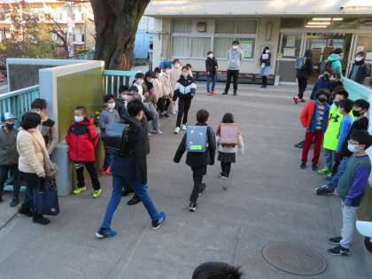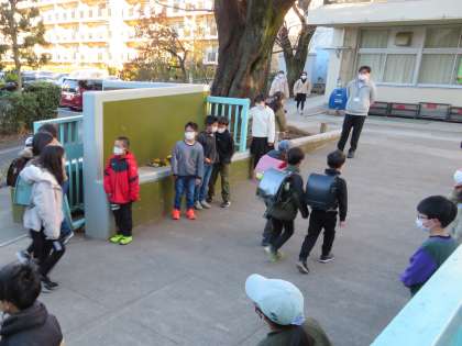 4年生があいさつをすると、1年生も一緒になって登校する友達に元気にあいさつをしていました。すてきなあいさつの輪が広がっていくようでいいですね。