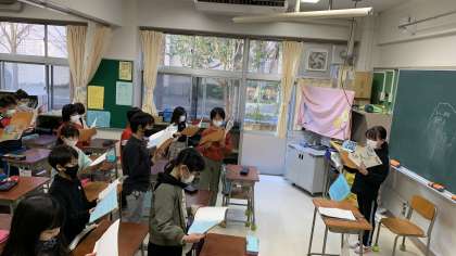 最終日の本日は、自分の好きな歌をみんなに紹介し、一緒に音読する活動をしました。宿題でもたくさん音読してきたことで、歌の情景を思い浮かべながら読むことができました。