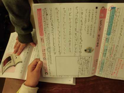 「どうして ないているの」という教材で、落書きをされた教科書の気持ちを考えました。