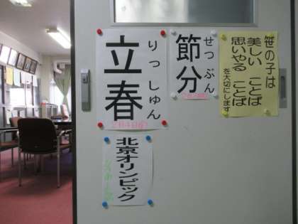 校長からは、○今日で1月が終わることから1か月間の振り返りをするとともに、2月の生活・学習のめあてを確認しましょう。 ○一昨日の漢字検定では、受検したみなさんが頑張り、自分の目標を達成させ最後までやりぬいている姿が素晴らしかったこと。 ○今週のキーワードとして2月3日「節分」と2月4日二十四節気の一つ「立春」についてその意味を考えるとともに、実際の季節の変化について自然と通して感じ取りましょう。 ○北京オリンピックが2月4日から20日までの17日間の日程で7競技109種目が行われます。東京大会と同じように関心をもち、競技で頑張り活躍する日本選手を応援しましょう。 などについて話をしました。