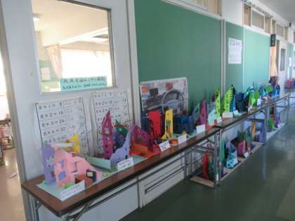 2年生は図工の学習で、初めてカッターナイフを使って作品を作りました。作品名は「まどをひらいて 〜カッターナイフタワー〜」です。一人一人の感性を発揮した、すてきな作品に仕上がっています。