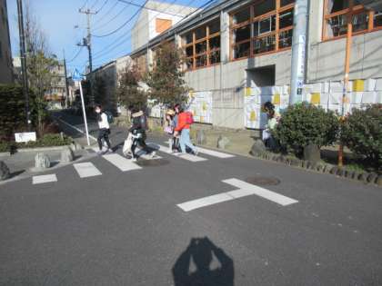 下校の際に気を付けるポイントとして、○通学路を通って下校すること。 ○横断歩道や歩道の通行のルールやマナーを守ること。などについて子どもたちに指導しました。