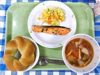 今日は立春です。立春は春の始まりとされる日です。春をイメージして、あしたばを練りこんだ緑色のパンを、お花のような形でつくってもらいました。植物が芽吹き、花々が咲く、あたたかい春がくるのが待ち遠しいですね。まだまだ寒い日が続きますが、しっかりと食べて寒さを乗り切りましょう!
