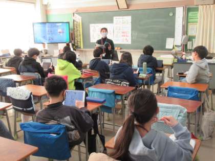 6年2組では、子どもたちが、教室で、またはオンラインで、教科書や掲示資料を活用しながら生活習慣病の予防について、自分の生活と結び付けて考えを深めていました。よりよい生活づくりにつなげていけることを願っています。