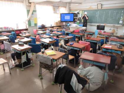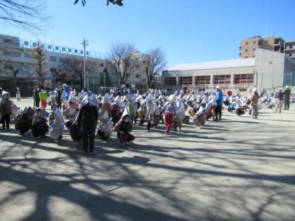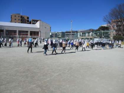 4校時が始まってすぐの11時30分から、子どもたちには予告をしない、2月の避難訓練を行いました。