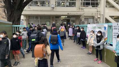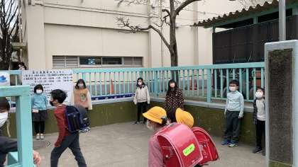 2/8 3年生 今日も元気にあいさつキッズに取り組みました。 (あいさつ週間2日目)