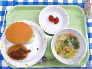 今日は給食室で、コロッケを手作りしました。じゃがいもを蒸して、野菜を炒めて、ひとつひとつ手で丸めてつくります。寒い中での作業は大変ですが、調理員さんが一生懸命作ってくれました。パンにはさんで、大きな口をあけて食べてくださいね。