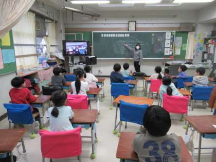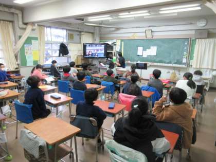 今日の児童集会は、集会委員会のみなさんが企画・準備した「給食ビンゴ集会」で、Zoomを使って行いました。