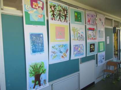 世田谷区立小学校の連合行事として、毎年世田谷美術館で開催されている「図画工作作品展」(1月26日〜1月30日開催)に出展した作品が、北校舎3階の算数学習室前の掲示コーナーで紹介されています。先日、校内放送で全校の子どもたちにも紹介がありました。