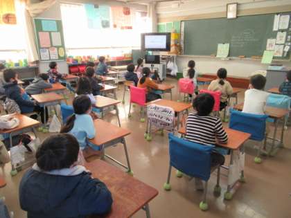 今日の児童集会では、代表委員会のみなさんが制作した動画の視聴を通して、ユニセフ募金活動についてのお知らせと協力のお願いがありました。