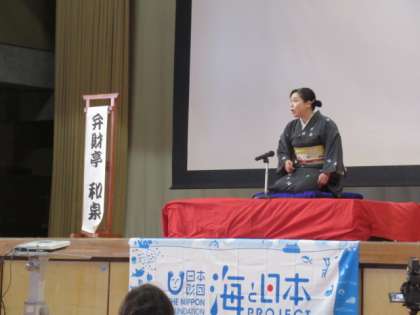 本日、1・2時間目に『海と日本プロジェクト』の方をお招きして、「海の親子寄席」を行いました。