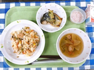 今日はひなまつり給食です。ひなまつりは桃の節句とも言われ、女の子の健康を祈る日とされています。給食では、女の子だけでなく全員の健康を願ってつくりました。ちらしずしに入っているえびは、おせちのように長生きを願って入れられています。デザートは桃の節句にちなみ、桃色のいちごミルクプリンをつくりました。他にもひなまつりには、はまぐりのすまし汁、ひしもち、ひなあられ、甘酒、桜餅などの行事食があります。