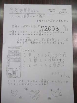 ご家庭からのユニセフ募金活動へのご理解とご協力に感謝します。ありがとうございました。