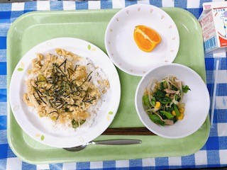 今年のNHK大河ドラマは「鎌倉殿の13人」という名前で、鎌倉時代の幕府の動乱を描いています。それにちなみ、今日は神奈川県鎌倉市に関係のある献立にしました。鎌倉と言えば。湘南の海でとれるしらすが有名で、いろいろなところでしらす丼が食べられます。また、明治時代から伝わる鎌倉ハムも有名で、今日は鎌倉ハムをつかったサラダをつくりました。