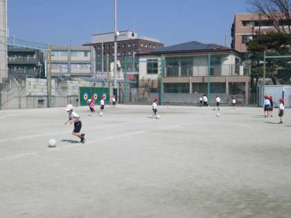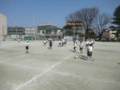 体育の後半の時間は、学級ごとに「ボールけりゲーム」の学習に取り組みました。