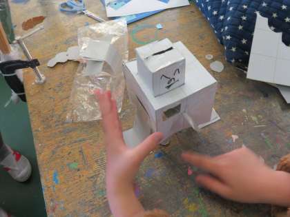 4年生は、図工の学習で、生活を楽しくしてくれるお手伝いロボットを作っています。