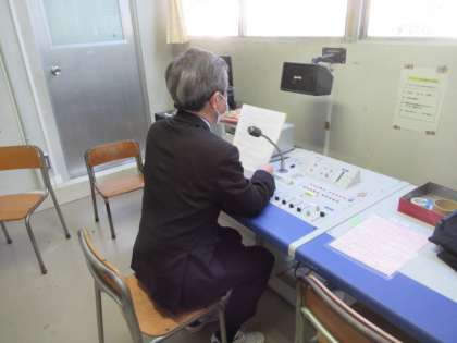 全校朝会を校内放送を使って行いました。
