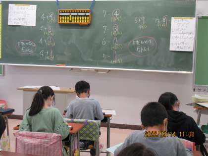 今日の算数では、「そろばんのよさ」や「今の算数と同じか違うか」を体験しながら考えました。
