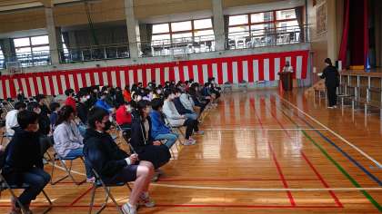 今日の1・2校時は、体育館で卒業式練習を行いました。