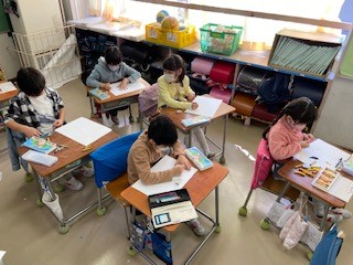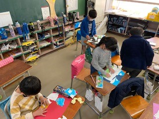 今日で2年生の図工の学習が3クラスとも終わりました。1年間で作った作品をバッグに入れながら、「懐かしいな。」「こんな作品もあったね。作ったね。」と話していました。3学期に作ったお面も入れて、持ち帰ります。その後、パズル作りをしました。自分の作ったもので楽しむ子もいるし、交換して楽しむ子もいました。楽しい、けれど少し難しいパズルも楽しんでください。