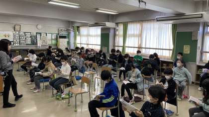 はじめは、歌のリクエスト。みんなが歌える曲を小さな声で歌いました。感染症対策の観点から、今年度は合唱がなかなかできませんでした。今日はその分も含めて、みんなで歌えることの喜びをかみしめているようでした。1年間、田村先生と楽しく音楽の学習をしてきました。子どもたちは、「1年間頑張ったから、去年よりも音楽が好きになった!」「リコ-ダーが吹けて楽しかった!」など、感想を話していました。